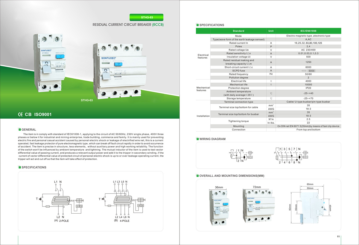 SONTUOEC என்பது சீன சப்ளையர்கள்/உற்பத்தியாளர்களில் ஒருவராகும் இது தனிப்பட்ட பாதுகாப்பை திறம்பட பாதுகாக்கும் மற்றும் சாதனங்களுக்கு சேதம் ஏற்படுவதைத் தவிர்க்கும். மீதமுள்ள மின்னோட்டம் இயக்கப்படும் சர்க்யூட் பிரேக்கர் ஓவர்லோட் மற்றும் ஷார்ட் சர்க்யூட் பாதுகாப்பு மற்றும் சாதாரண நிலையில் வரியை அடிக்கடி மாற்றாமல் செயல்படும். தயாரிப்பு தொழில், வணிகம், கட்டிடம், குடியிருப்பு போன்றவற்றுக்கு ஏற்றது. இது IEC61008-1 தரநிலைகளுடன் இணங்குகிறது.