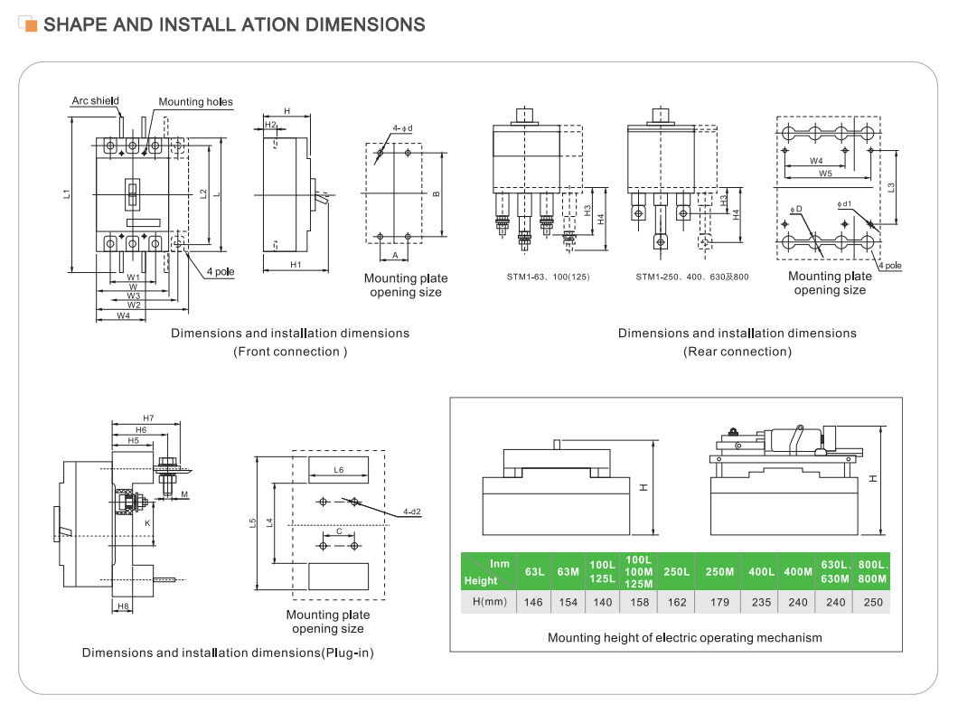 | மாதிரி | STM1-125 | STM1-250 | STM1-400 | STM1-630 | STM1-800 | STM1-1250 | |||||||||||||